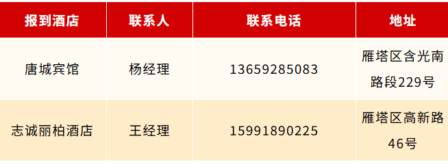 地点:唐城宾馆、志诚丽柏酒店